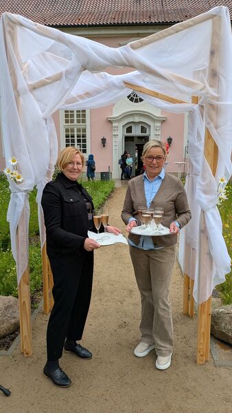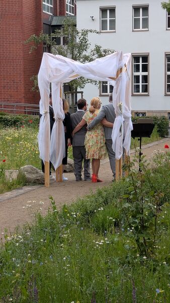 Begleitet wurden die Zeremonien von der Orgel, Sängerin Karina und dem Gospelchor des Kirchenkreises. Es gab Sekt und Blumen, eine Fotografin war vor Ort und die Kusshaltestelle am Traubogen war ein beliebter Stopp.